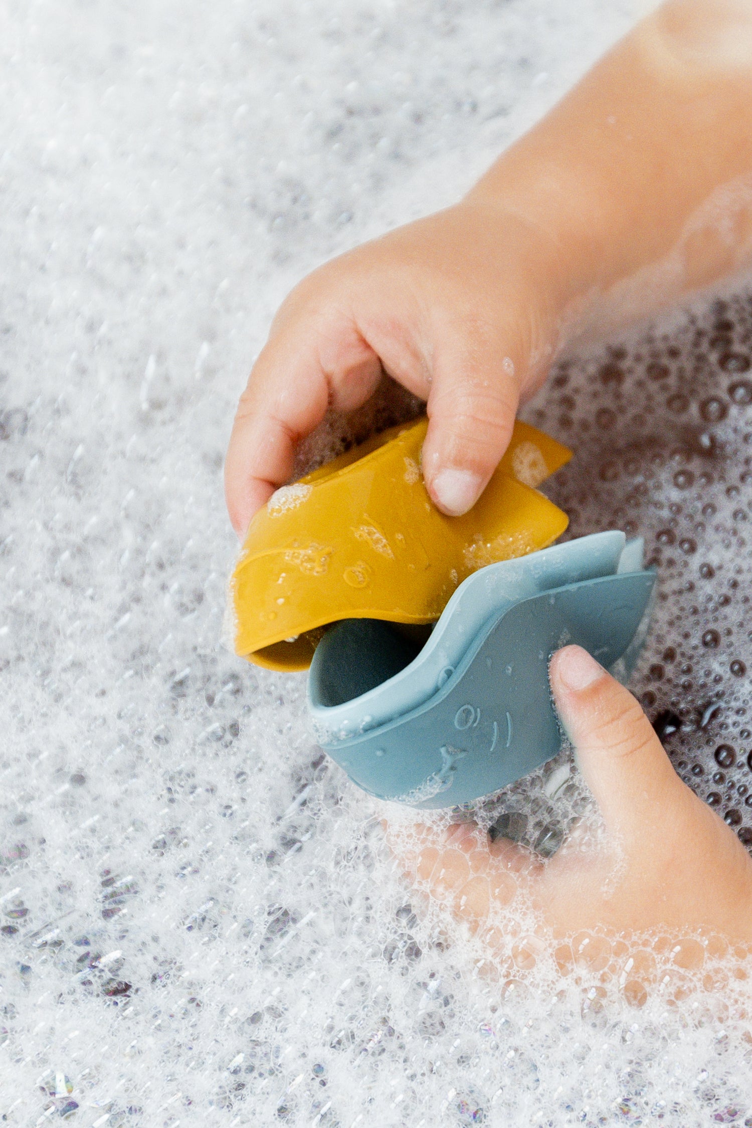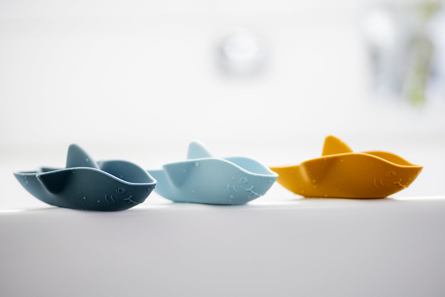 Make bath time a breeze with Saylor Mae silicone bath toys. Complete as a set of three silicone Shark Boats. These bath time beauties are easy to grab and hold. They float on top of the water when empty then fill them up and watch them sink to the bottom. The ultimate bath time entertainment. With no hidden cavities or holes. means no more worrying about mould. Easy to clean and come complete in a custom cotton Saylor Mae bag.